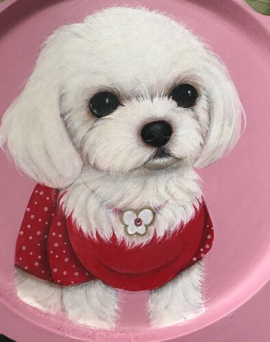 こんにちは! トールペイント歴30年・犬の肖像画を220頭以上描いた、トールペイント作家の小林静恵です。 世界最古の愛玩犬で、純白の被毛が美しいマルチーズ 抱っこが大好きな甘えん坊で、可愛いヘアスタイルを楽しむことも出来ますね 「マルチーズの絵を描…